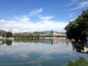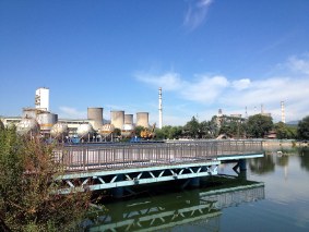 Shougang, literally « capital steelworks » used to be an important center for the production of steel in China. In the west part of Beijing, thousands of square meters of brownfield land were left over and then rediscovered by the authorities who now seek to attract new industries. The national industrial passed is glorified and former symbols of Shougang’s properity were preserved. But the activities for which the space is being used are also being diversified, like this sound and light show making a special use of the local architecture.